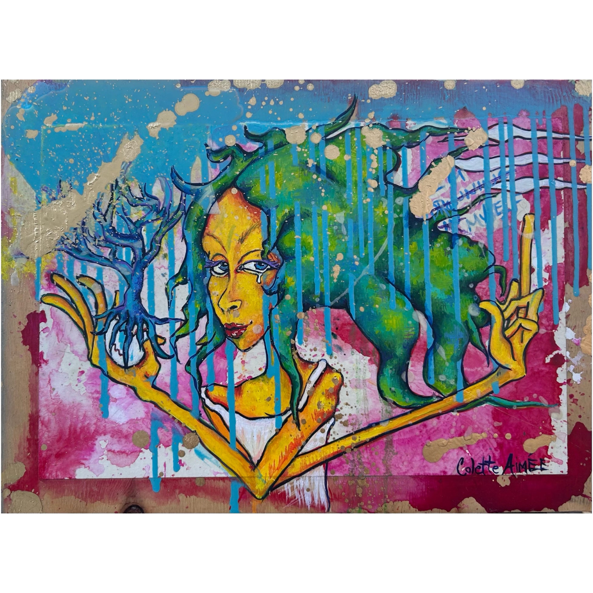 A figure emerges with a forest growing from the mind, symbolizing the discipline of emotional stillness and internal balance. The branching forms suggest thoughts that expand outward, yet remain rooted in calm awareness. Rather than reacting impulsively, the composition reflects strength through clarity—standing firm while remaining flexible enough to adapt. The layered textures and flowing color transitions reinforce the idea that grounding is not static, but an evolving state of growth and resilience.